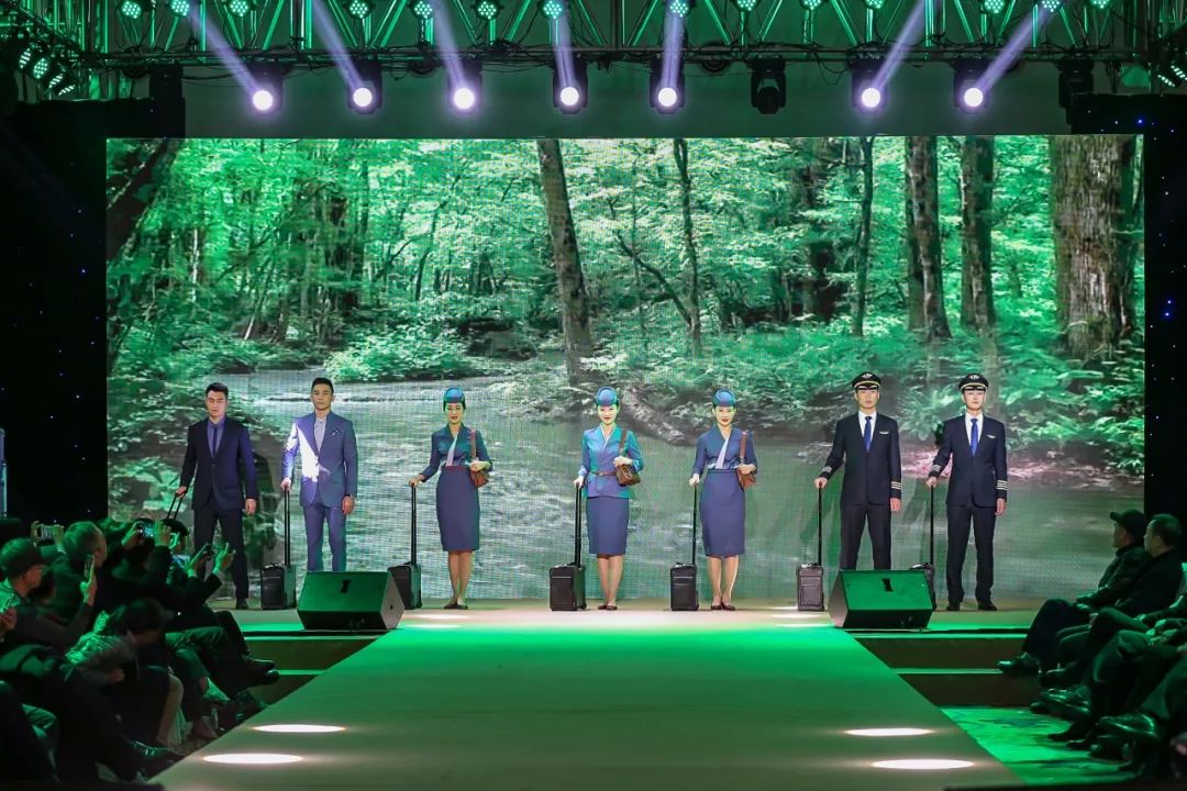 一段山航员工的民乐与书法表演,拉开发布会序幕。山航集团副总裁、股份公司总经理苗留斌精彩致辞后,开启制服发布环节,空姐、空保、飞行员分别走秀展示新制服,配以不同VCR,体现男乘女乘新风采。在集体亮相后,是季节主题展示,空勤人员分别身着春秋、夏冬不同服饰,大屏配以不同季节主题视频,沉浸式体验效果带领大家感受四季空勤制服的魅力。